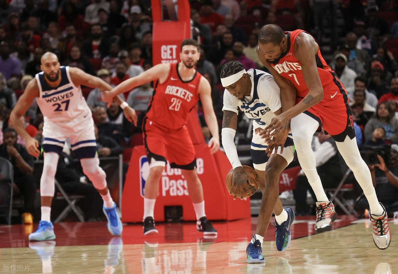 第二节比赛,康利开局命中踩线3分,阿门罚球拿1分,迪温琴佐上篮拿2分,麦克丹3分不中,戈贝尔补篮拿2分,森林狼领先10分。芬尼史密斯上篮拿2分,戈贝尔抛投拿2分,泰特上篮拿2分,迪温琴佐3分飙进,申京急停抛投打进,杜兰特3分飙进,卡佩拉上篮拿2分,兰德尔中投命中,杜兰特快下上篮打进,里德反击拿2分,卡佩拉上篮拿2分,兰德尔罚球拿1分,里德命中3分,森林狼领先9分。回来杜兰特打进2+1,申京背打戈贝尔拿2分,杜兰特在次节最后一攻命中3分,上半场打完森林狼55-53领先火箭。杜兰特上半场拿到18分2篮板3助攻2抢断,谢泼德11分,申京8分10篮板,阿门8分5篮板2助攻;里德得到17分,兰德尔12分,麦克丹10分4篮板,迪文8分4助,戈贝尔6分7板。